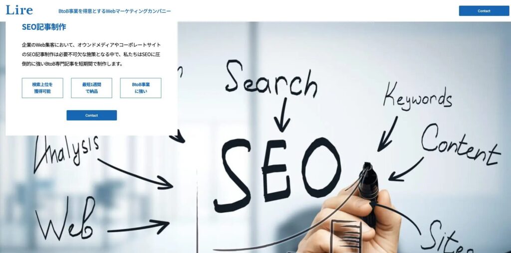 2025年9月24日 建設業界のSEO記事制作に強いマーケティング会社10選 建設業界では専門性の高いコンテンツが求められ、一般的なSEO記事制作会社では対応が困難な場面が多々あります。建築技術、法規制、安全基準などの専門知識を持ち、建設業界特有のキーワード戦略やローカルSEO対策に精通した記事制作代行会社を選ぶことが、オウンドメディア成功の鍵となります。本記事では、建設業界のSEO記事制作に強いマーケティング会社10社を厳選し、各社の強みや料金体系、選び方のポイントまで詳しく解説します。目次1 建設業界でSEO記事制作が重要な理由と課題2 建設業界のSEO記事制作に強いマーケティング会社10選3 建設業界向けSEO記事制作会社の選び方4 建設業界のSEO記事制作にかかる費用相場5 建設業界向けSEO記事制作のキーワード戦略6 建設業界のSEO記事制作で成果を上げるポイント7 建設業界向けSEO記事制作の外注時の注意点8 建設業界のSEO記事制作成功事例9 建設業界向けSEO記事制作の今後の展望10 よくある質問(FAQ)建設業界でSEO記事制作が重要な理由と課題建設業界のデジタルマーケティングの現状建設業界は従来、対面営業や紹介による受注が中心でしたが、近年のデジタル化の波により、オウンドメディアを活用したマーケティング戦略が注目されています。多くの建設会社がWebサイトを開設し、seo記事制作を通じて新規顧客の獲得を目指しています。しかし、建設業界の多くの企業は、デジタルマーケティングの専門知識を持つ人材が不足しており、効果的なseo対策を行うことが困難な状況にあります。特に、専門性の高い記事を制作し、検索エンジンで上位表示を獲得するためには、建設業界の知識とseoの両方の専門知識を持つライターが必要です。現在、建設業界では記事制作代行サービスを活用する企業が増加しており、外部の専門家による記事制作を依頼するケースが一般的になっています。代行会社を利用することで、高品質な記事を効率的に制作し、オウンドメディアの運営を成功させることが可能です。建設業界特有のSEO対策の難しさ建設業界のseo記事制作には、他の業界にはない独特の課題があります。まず、建設分野の専門用語や技術的な内容を正確に理解し、一般ユーザーにもわかりやすく伝える高度なライティングスキルが求められます。また、建設業界は地域性が強く、ローカルseo対策が重要になります。地域に特化した記事制作を行い、その地域の顧客に対して効果的にリーチする必要があります。さらに、建築基準法や安全規制などの法的要件についても正確な情報発信が必要であり、記事の制作には慎重さが求められます。seoに強い記事を制作するためには、キーワード選定から競合分析、コンテンツ戦略まで総合的なアプローチが必要です。建設業界に特化したseo会社や記事制作代行サービスを選ぶ際は、これらの業界特有の課題に対応できる会社を選ぶことが重要です。専門性の高いコンテンツが求められる背景建設業界の顧客は、工事を依頼する際に高度な専門知識と信頼性を重視します。そのため、オウンドメディアの記事も専門性の高い内容が求められ、表面的な情報だけでは顧客の信頼を獲得することは困難です。検索エンジンも近年、E-A-T(専門性・権威性・信頼性)を重視したアルゴリズムを採用しており、専門知識を持つライターが制作した高品質な記事ほど上位表示されやすくなっています。建設業界の記事制作においては、実際の施工経験や技術的な知識を活かした記事を作成することが、seo効果を最大化する鍵となります。コンテンツseoの観点からも、ユーザーの検索意図に応える詳細で専門的な情報を提供することで、検索エンジンからの評価を向上させることができます。記事制作代行会社を選ぶ際は、建設業界の専門知識を持つライターが在籍しているかを確認することが重要です。建設業界向けSEO記事制作の効果と必要性建設業界においてseo記事制作を行う最大の効果は、新規顧客の継続的な獲得と企業の信頼性向上です。適切なキーワード戦略に基づいた記事を継続的に公開することで、潜在顧客との接点を増やし、長期的な集客効果を得ることができます。また、専門的な記事を通じて企業の技術力や実績をアピールすることで、競合他社との差別化を図ることができます。記事制作を通じて蓄積されたコンテンツは、営業資料としても活用でき、多角的なマーケティング効果をもたらします。さらに、継続的な記事制作により、検索エンジンからのオーガニック流入が増加し、広告費用を削減しながら効果的な集客を実現できます。建設業界の特性を理解した記事制作代行会社に依頼することで、これらの効果を最大化することが可能です。建設業界のSEO記事制作に強いマーケティング会社10選株式会社 リレ株式会社リレはマーケティング戦略立案からサイト構築、SEOコンテンツ制作、広告運用までをワンストップで提供するマーケティング支援企業です。Bto